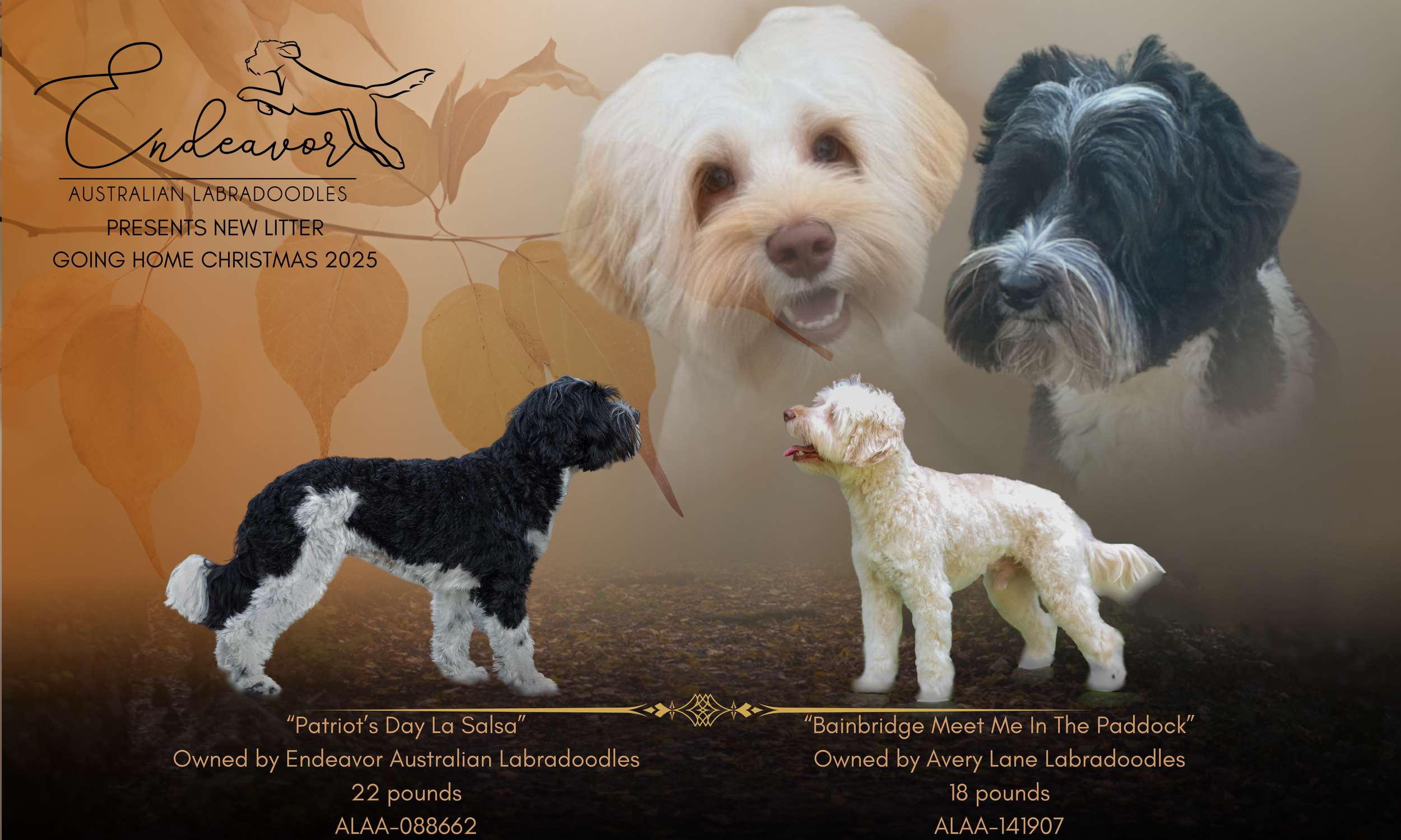 We have an upcoming litter with Salsa and Paddock (Owned by Avery Lane Labradoodles) These puppies will be ready just days before Christmas and our waitlist for them has already started! We are taking a few more reservations on this litter of black phantoms, chocolate phantoms, Carmels and partis.